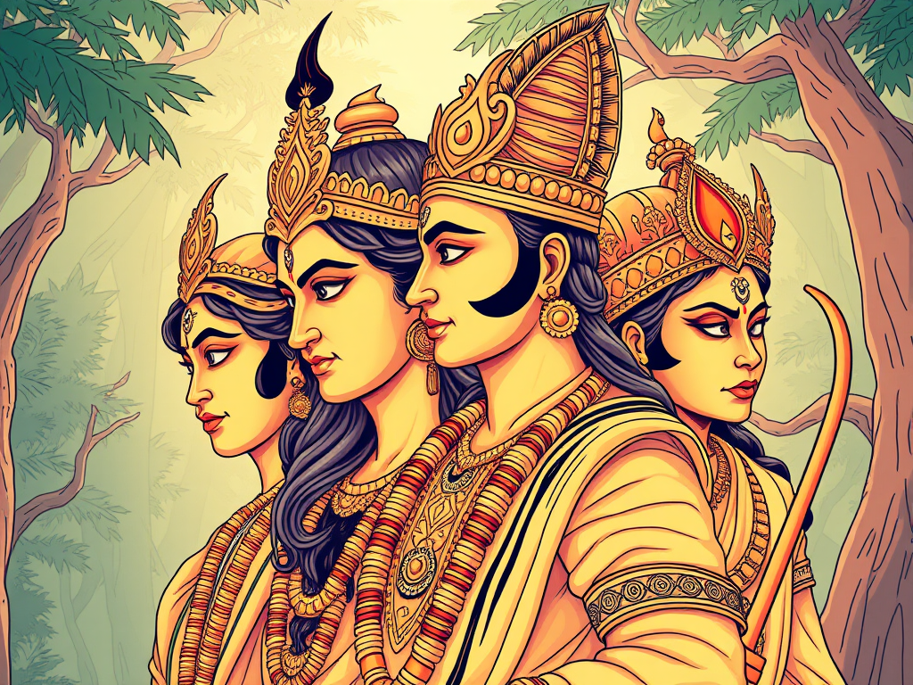 - Sacrifice: Many characters in the Ramayana make personal sacrifices for the greater good, such as Rama’s exile and Sita’s willingness to undergo the trial by fire.